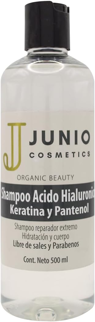 JUNIO - Shampoo con ácido hialuronico - Shampoo keratina - shampoo pantenol - Shampoo 500 ml - hipoalergénica - Aromaterapia - (No probado en animales)<