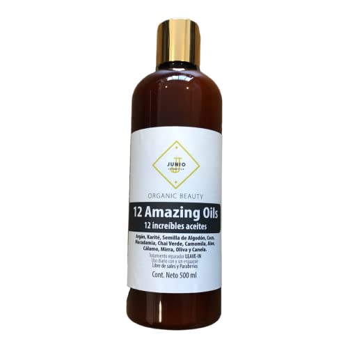 Junio cosmetics tratamiento para cabello seco - 12 aceites para nutrir - tratamiento cabello seco y maltratado - 500ml - sin sal - sin parabenos - tratamiento capilar