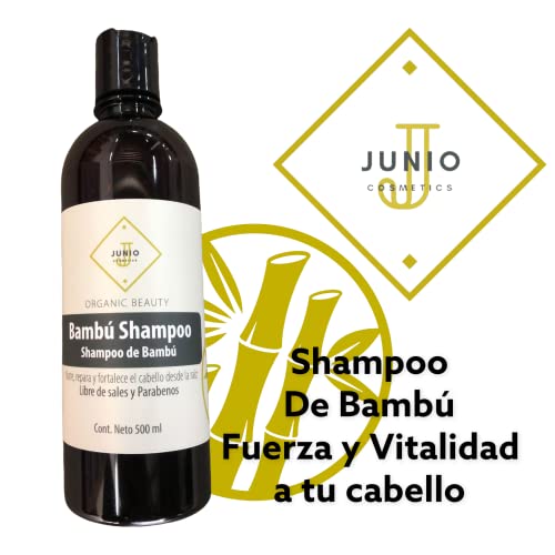 SHAMPOO DE BAMBÚ SIN SALES NI PARABENOS 500ML, DA FUERZA Y VITALIDAD AL CABELLO JUNIO COSMETICS