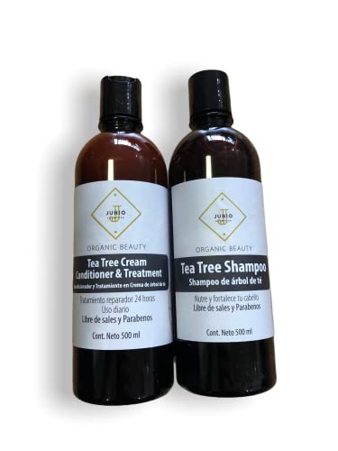 PACK SHAMPOO Y TRATAMIENTO TEA TREE SIN SALES NI PARABENOS 2 UNIDADES 500ML C/U JUNIO COSMETICS