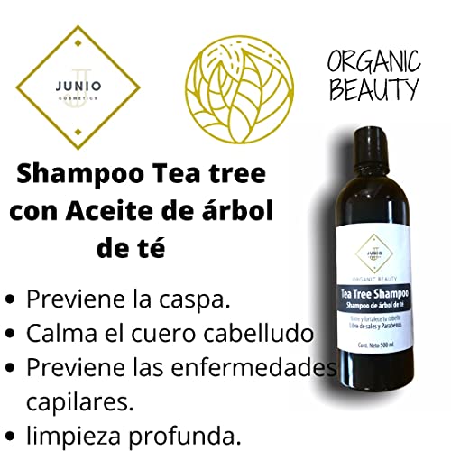 SHAMPOO TEA TREE/SHAMPOO DE ACEITE DE ARBOL DE TE; SIN SAL NI PARABENOS JUNIO COSMETICS